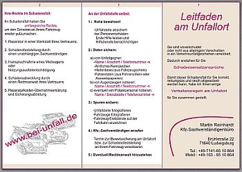 Meistens ist man in der Unfallsituation völlig überfordert und gestresst. Diese beiden Broschüren können Ihnen helfen sich richtig zu verhalten, das heißt auch Ihnen zu Ihrem Recht verhelfen.